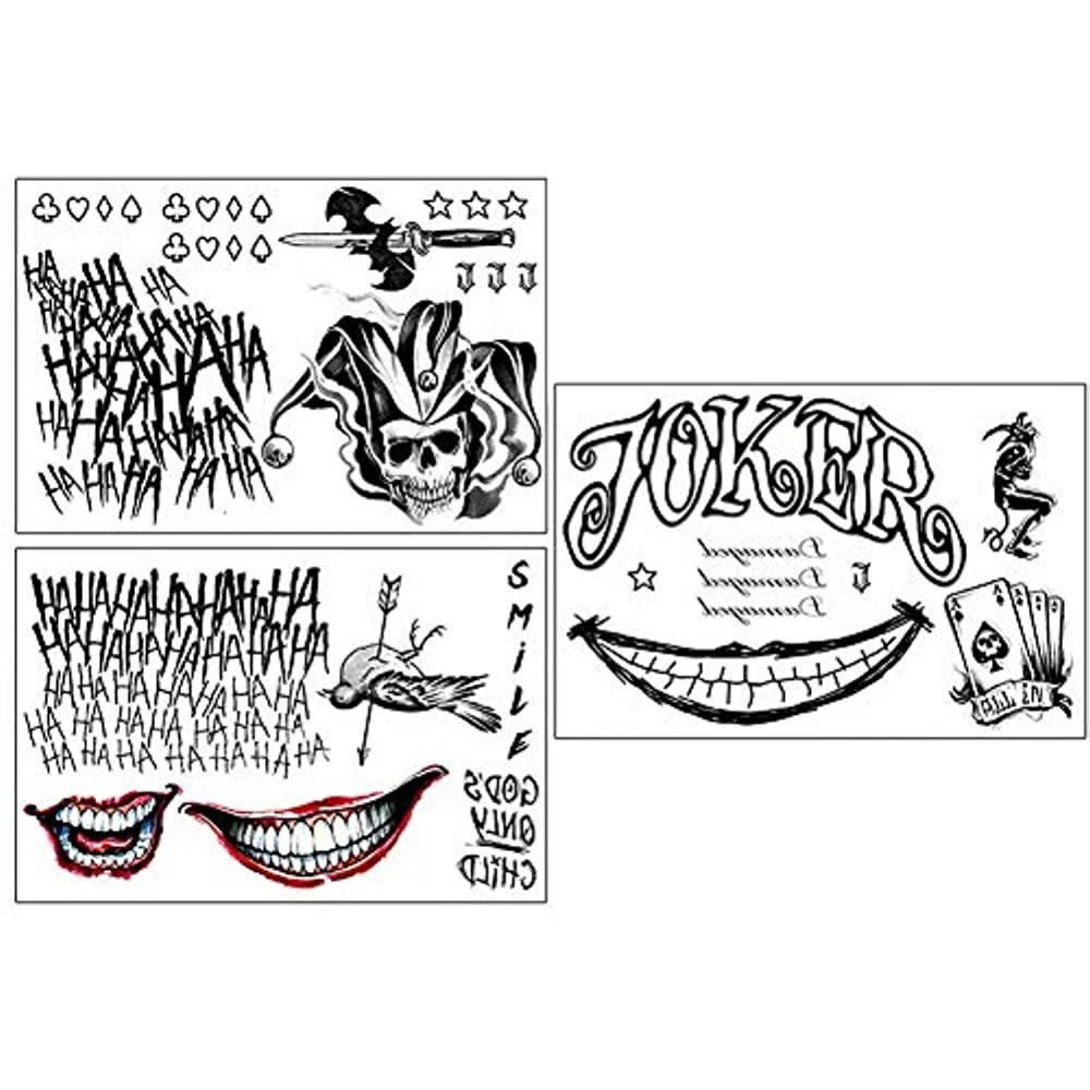 3 Sheets Joker Tattoos Realistic Last Long Halloween Fake Temporary Tattoo Sticker For Men All Versions Perfect For Halloween Cosplay Costumes Masquerade Party Makeup Accessories Beauty Personal Care Amazon Com
